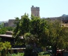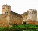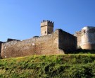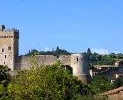 Le prime notizie sul borgo fortificato risalgono a cavallo tra il X e l'XI secolo. I signori di Staggia, i Soarzi, divennero una delle più potenti consorterie feudali della Valdelsa, entrando a più riprese nelle lotte tra Firenze e Siena, poiché il loro territorio si trovava sul confine tra le due rivali. Il suo periodo di maggior splendore fu il XII secolo, mentre nel secolo successivo decaddero gradualmente. Alla fine del secolo i Franzesi, famiglia originaria del Valdarno Superiore che si era arricchita con il commercio soprattutto con la Francia, acquistò il castello, ingrandendolo e ristrutturandolo. Nel 1361 la famiglia subì il fallimento commeciale e la roccaforte venne comprata dai Fiorentini, come avanposto contro i Senesi. Nel 1372 le mura vennero rafforzate, trovandosi spesso al centro di lotte di confine. Nel 1431, con la consulenza di Filippo Brunelleschi, le mura cittadine vennero raccordate al castello, che divenne "cassero". Con l'introduzione delle armi da fuoco e con la conquista di Siena le fortificazioni divennero sostanzialmente inutilizzate. Il castello ha la forma quadrilatero irregolare e sorge su di un'altura. Il mancato allineamento delle vie del borgo rivela l'orgine indipendente dei due nuclei. Al centro sorge il mastio quadrato, risalente all'epoca dei Soarzi, circondato da due recinti. Sul recito più grande si ergono agli angoli due poderosi torrioni cilindrici, frutto delle aggiunte del XV secolo. Su questo lato si trovava il palazzo feudale del Franzesi, del XIV secolo, del quale restano alcuni portali, finestre lavorate e, all'interno del recinto, un grande caminetto. Sul torrione nord resta uno stemma. Il recinto minore era usato come ambiente di servizio e luogo di rifugio per la popolazione in tempo di guerra. Vi si trovavano torri quadrate simili a quelle delle mura, ma solo una è oggi ben conservata. L'unica porta di accesso al castello è composta da una rampa che scavalca perpendicoralmente la porta creando due livelli stradali, che permettevano di dividere il flusso diretto al castello da quello diretto alla città.