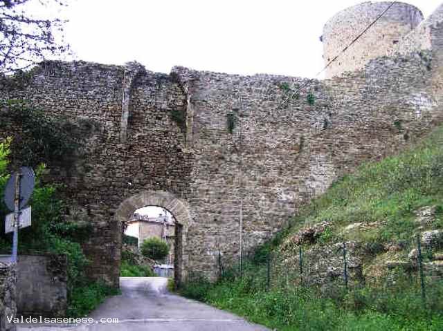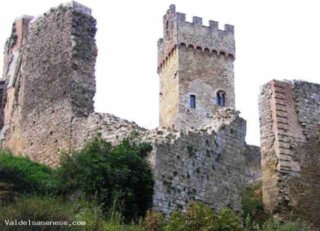 Le prime notizie sul borgo fortificato risalgono a cavallo tra il X e l'XI secolo. I signori di Staggia, i Soarzi, divennero una delle più potenti consorterie feudali della Valdelsa, entrando a più riprese nelle lotte tra Firenze e Siena, poiché il loro territorio si trovava sul confine tra le due rivali. Il suo periodo di maggior splendore fu il XII secolo, mentre nel secolo successivo decaddero gradualmente. Alla fine del secolo i Franzesi, famiglia originaria del Valdarno Superiore che si era arricchita con il commercio soprattutto con la Francia, acquistò il castello, ingrandendolo e ristrutturandolo. Nel 1361 la famiglia subì il fallimento commeciale e la roccaforte venne comprata dai Fiorentini, come avanposto contro i Senesi. Nel 1372 le mura vennero rafforzate, trovandosi spesso al centro di lotte di confine. Nel 1431, con la consulenza di Filippo Brunelleschi, le mura cittadine vennero raccordate al castello, che divenne "cassero". Con l'introduzione delle armi da fuoco e con la conquista di Siena le fortificazioni divennero sostanzialmente inutilizzate. Il castello ha la forma quadrilatero irregolare e sorge su di un'altura. Il mancato allineamento delle vie del borgo rivela l'orgine indipendente dei due nuclei. Al centro sorge il mastio quadrato, risalente all'epoca dei Soarzi, circondato da due recinti. Sul recito più grande si ergono agli angoli due poderosi torrioni cilindrici, frutto delle aggiunte del XV secolo. Su questo lato si trovava il palazzo feudale del Franzesi, del XIV secolo, del quale restano alcuni portali, finestre lavorate e, all'interno del recinto, un grande caminetto. Sul torrione nord resta uno stemma. Il recinto minore era usato come ambiente di servizio e luogo di rifugio per la popolazione in tempo di guerra. Vi si trovavano torri quadrate simili a quelle delle mura, ma solo una è oggi ben conservata. L'unica porta di accesso al castello è composta da una rampa che scavalca perpendicoralmente la porta creando due livelli stradali, che permettevano di dividere il flusso diretto al castello da quello diretto alla città.
