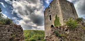 Imponente fortilizio medievale, caratterizzato da una grande torre rettangolare in pietra,...