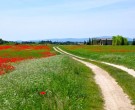 Itinerario incentrato sul passaggio per borghi medievali dove vale la pena sostare per una visita. Il chilometraggio è ridotto ma l’altimetria è decisamente allegra con continui saliscendi. Si parte dal centro di Colle Va d’Elsa in piazza Arnolfo. Percorriamo Via Ferdinando Livini e poi in seguito Via Porta Vecchia, al termine di tale via proseguiamo per la strada della cappellina che ci porterà in via per Borgatello. Seguendo l’indicazione per Borgatello e successivamente per San Gimignano passando da Pietrafitta per evitare così la strada più trafficata che sale direttamente verso il borgo. Visitato il paese delle torri con relativo giro delle mura si esce in direzione di Castel San Gimignano - Volterra. Si pedala su una strada vallonata dove consigliamo la beve deviazione per San Donato, borgo medievale con una bella pieve romanica. Raggiunto il paese di Castel San Gimignano si piega a sinistra fino a Colle Val d’Elsa (11,2 km) sulla S.S. 68 passando per Campiglia dei Foci.