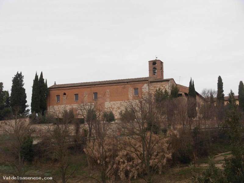Nel 1229 fu concesso al Beato colligiano Pietro Gargalini, francescano, il permesso di costruire un oratorio. In quell’anno, con apposita Bolla, Papa Gregorio IX delegava il Padre Priore dei Domenicani di Siena di benedire la posa della prima pietra. Fu pertanto uno dei primi insediamenti francescani in Toscana. Lo stile della chiesa rispettava i canoni francescani, che volevano le chiese essenziali e severe, con pareti spoglie e tetto a vista. Quattro monofore ogivali si aprivano su ciascuna parete, mentre una si trovava sopra il portale di ingresso. Otto capriate costituivano la copertura lignea del tetto che doveva essere coperto da un tavolato decorato. Il Convento doveva essere dotato di due chiostri. Nel 1338 fu ultimata la costruzione del ponte, a nove arcate, che collega il convento alla città. Danneggiata durante l’assedio di Colle da parte delle truppe del Duca Alfonso di Calabria del 1479, fu nuovamente consacrata nel 1485. Nel corso del 1700 subì necessari lavori di restauro, con i tamponamenti delle finestre laterali e la loro sostituzione con finestroni rettangolari e la realizzazione di una volta. Alcune delle vetrate che ornavano la chiesa furono tolte ed utilizzate per altre chiese. Il ciclo pittorico presente sulle pareti è stato coperto da imbiancature. Risale al 1740 il monumento funebre del musicista ed organista del Convento Antonio Giacobbi. Nel periodo dal 1767 al 1809 il Convento ha svolto anche la funzione di Ospedale pubblico ed il chiostro fu utilizzato per la sepoltura dei morti. Nel 1866 il Convento fu soppresso e le sue opere d’arte rimosse. Fino al 1883 è stato utilizzato anche come caserma militare subendo notevoli danni. Nello stesso anno il Convento fu nuovamente restaurato e per breve tempo destinato a sede delle Missioni estere dei PP.MM.CC. di San Francesco. La destinazione a Seminario Vescovile risale al 1940 per volere del Vescovo di Colle di Val d’Elsa Francesco Niccoli, che nel 1937 acquisì i locali ed iniziò una nuova ristrutturazione. Un ultimo restauro è avvenuto nel 1992 ed ha consentito di riscoprire parte degli originari affreschi.