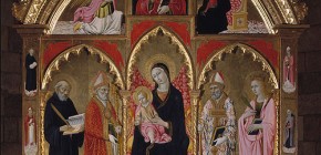 Pala di San Cirino: Madonna col Bambino e due committenti e i Santi Benedetto, Cirino, Don...