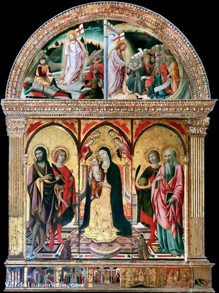 L’artista senese realizzò nella sua bottega numerose pale d’altare, nelle quali a una codifica delle immagini dei santi fanno spesso riscontro, nelle storie dipinte, un piglio vivace e delicate gamme cromatiche.