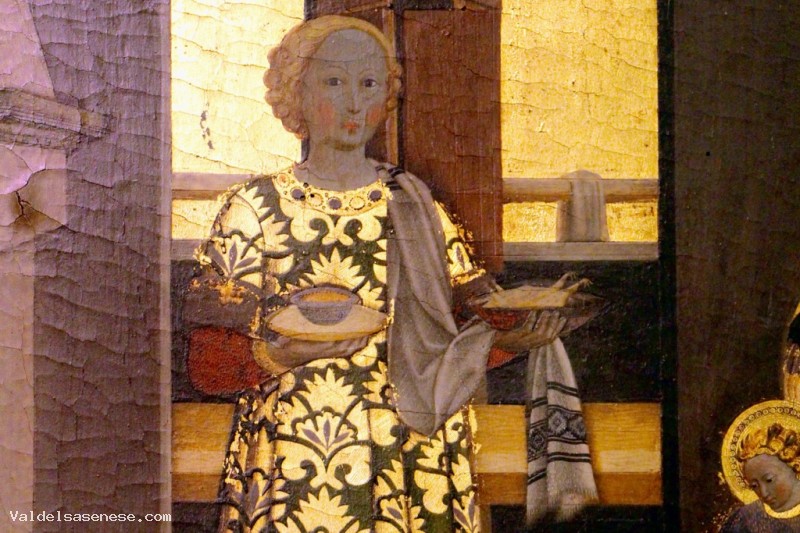 In questo polittico della “Natività della Vergine” è rappresentato un ambiente domestico della Siena di allora, con una buona dose di fantasia che rende la realtà quotidiana ancora più fiabesca. Una sorta di “Buon Governo” della famiglia, dove tutto è documentato dettagliatamente e sta esattamente al suo posto: ricchi, poveri, servi, infanti e visitanti.