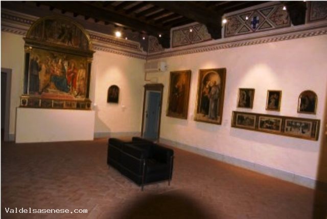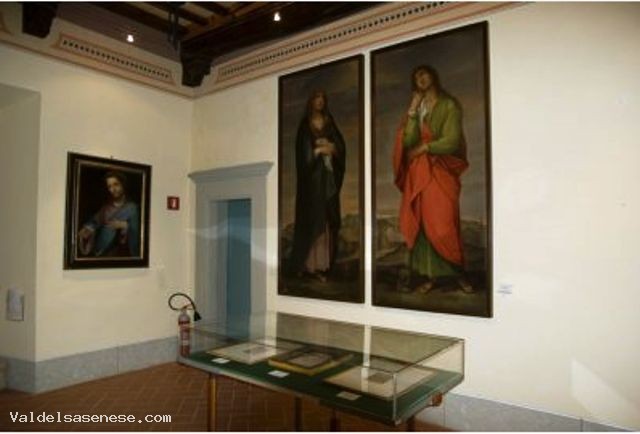 Al primo piano sono conservate opere che testimoniano l'antico patrimonio storico del territorio di Casole d'Elsa. Sono presenti presente un gruppo di opere risalenti al XV secolo. Sono inoltere esposti: