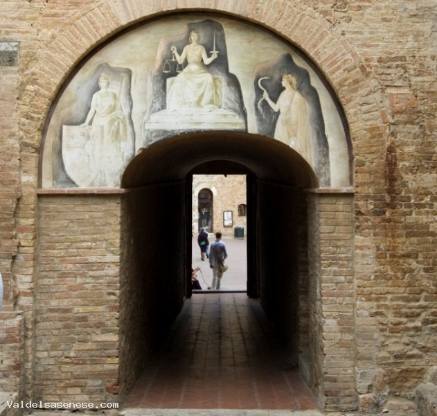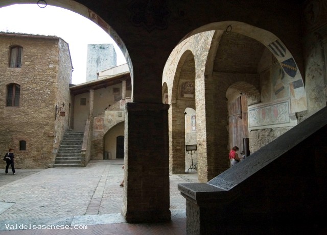 Il Museo Civico di San Gimignano si trova ai piani superiori del Palazzo Pretorio. L'ingresso porta al cortile del palazzo costruito nel 1323 e decorato da numerosi stemmi affrescati o scopiti. Al centro si trova una cisterna realizzata nel 1361.