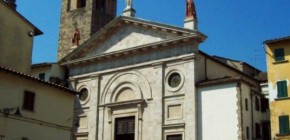 La facciata è neoclassica a opera di Agostino Fantastici; essenziale nelle linee ma...