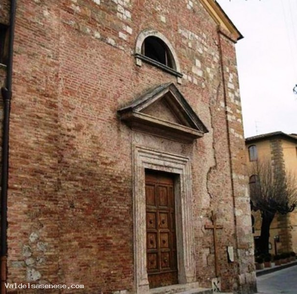 Documentata dalla fine del Duecento, è stata successivamente trasformata. Della struttura romanica resta un portale laterale, interessante per la tipologia dell'architrave, realizzato da conci di arenaria incastrati a formare una decorazione. L'aspetto attuale risale al XVIII secolo; la facciata ha il portale in bugnato con il timpano triangolare e un occhio semicircolare. L'interno è un'aula rettangolare con volte a crociera, l'area presbiteriale è leggermente rialzata e preceduta da una trabeazione sostenuta da due imponenti colonne tuscaniche. Di grande interesse è il gruppo scultoreo in terracotta policromata nell'attiguo oratorio della Compagnia della Croce.